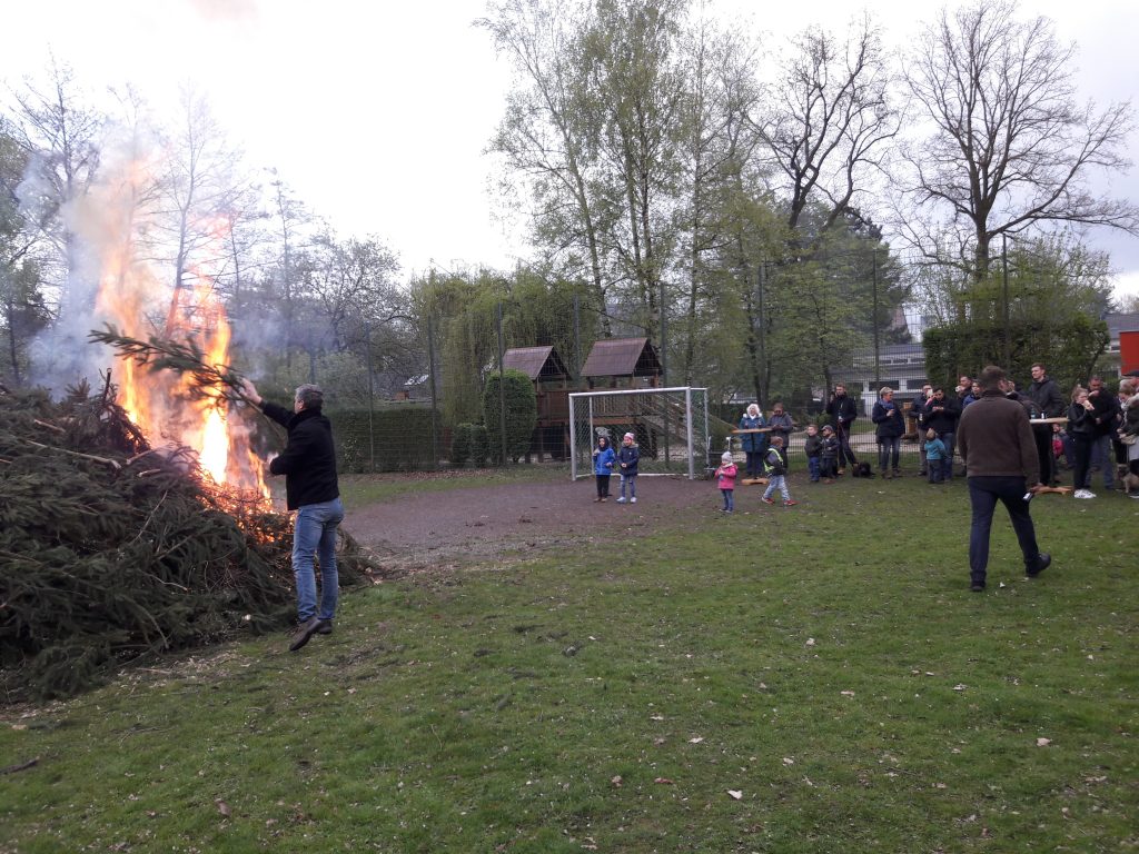 Es war zwar zunehmend kühl, das Wetter war aber deutlich besser als erwartet und vorausgesagt, sodass recht viele Marienvierteler und ihre Gäste beim Osterfeuer dabei waren, das nach ein paar Startschwierigkeiten (etwas Wind fehlte) dann doch hoch loderte.
