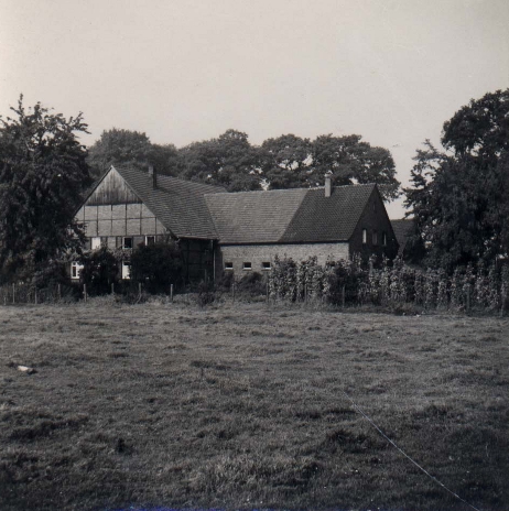 Hausansicht des Hofs Rohlof – mit den Eichen, um die herum die Realschule gebaut wurde