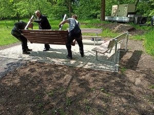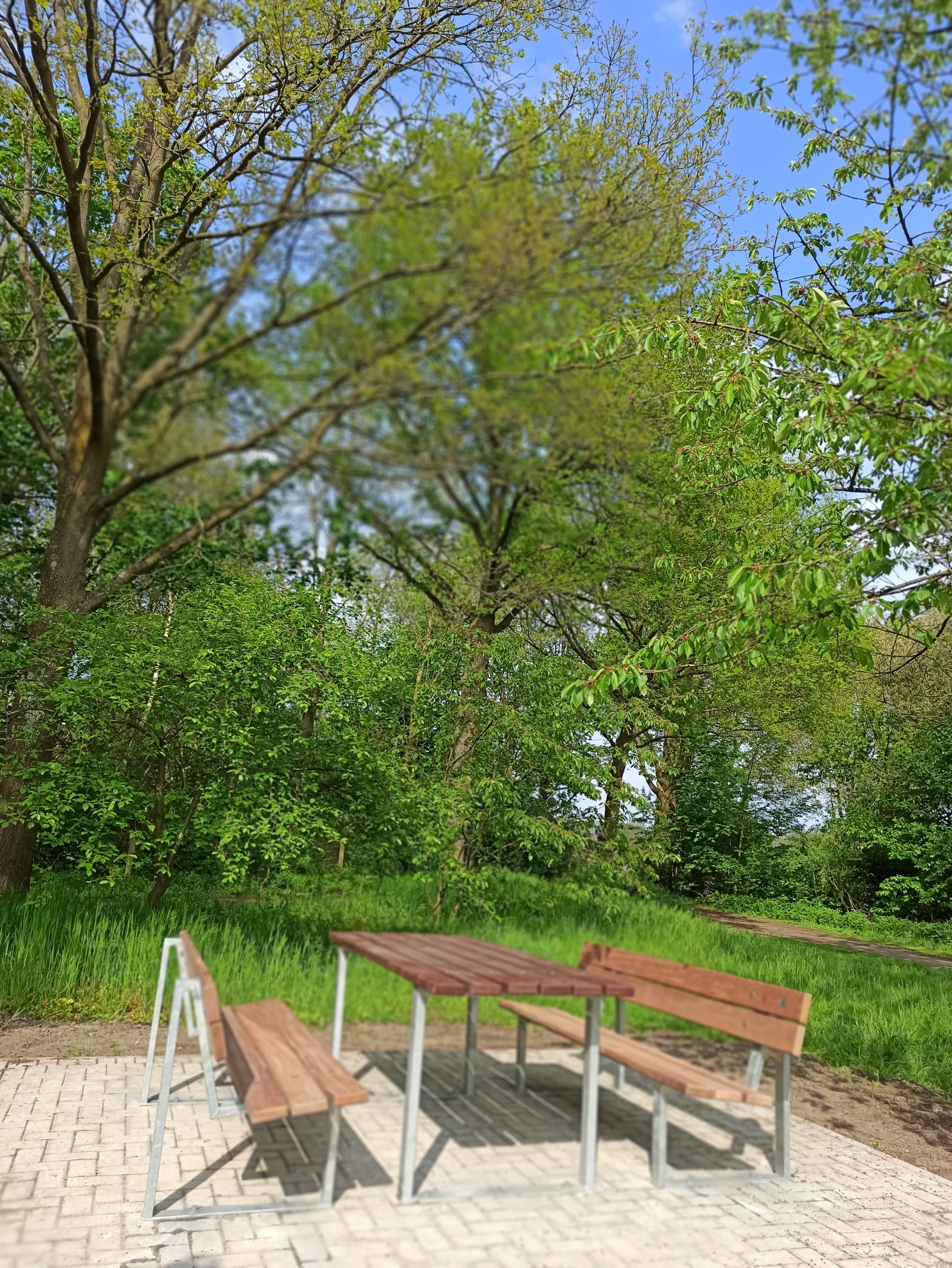 Nach etlichen Verzögerungen durch die Corona-Pandemie konnte gestern die neue Sitzgruppe im Biotop am Luner Weg, hinter der ehemaligen Gerhart-Hauptmann-Realschule, aufgestellt werden.