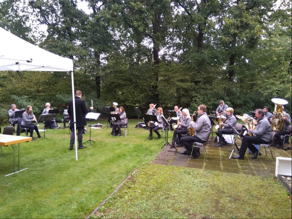 Es war toll, nach der langen Corona-Zwangspause mal wieder vor Publikum zu musizieren. Es waren 75 Gottesdienstbesucher in Pastor‘s Garten. Nach dem Gottesdienst haben wir noch einige Stücke zum Besten gegeben und die Zuhörer konnten sich mit Kaffee wärmen, den Ulla Bensch vom Pfarreirat angeboten hat. Allen Voraussagen zum Trotz ist es trocken geblieben und auch wir Musiker hatten unseren Spaß.
