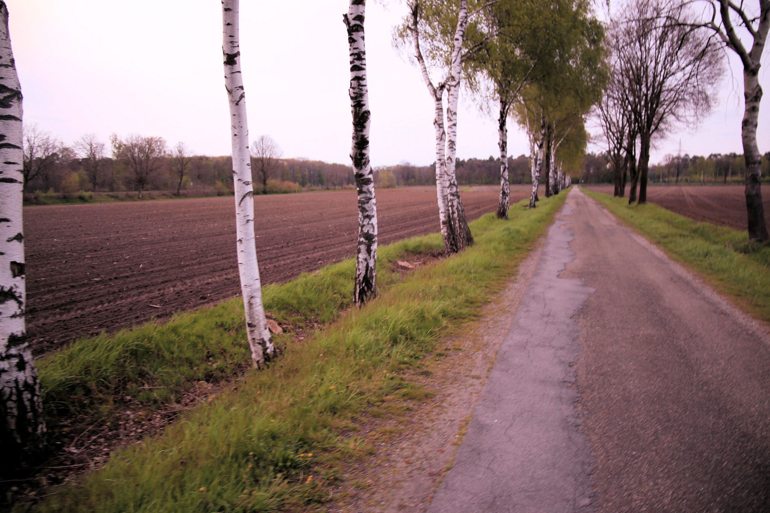 - eine Birkenallee, die Richtung Munitionsdepot strebt, als grüner Lichtblick, leider mit großen Lücken und nur langsam verrottenden Baumstümpfen.