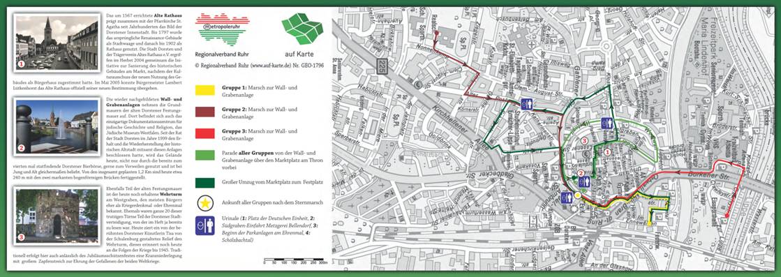 Gruppe 1 Antrittsplatz: Zeltplatz Marschordnung: Sappeure Tambourcorps Dorsten-Hardt Schützenkapelle Rhade Major + Adjutant zu Pferde Reservisten der Bundeswehr I. Kompanie Kinderkompanie Fanfarencorps Hervest-Dorsten Marketender-/Invalidenwagen II. Kompanie III. Kompanie Fanfarenzug Anholt Schützengilde Hainichen Schützenverein Dorsten-Hardt Kilian-Schützengilde