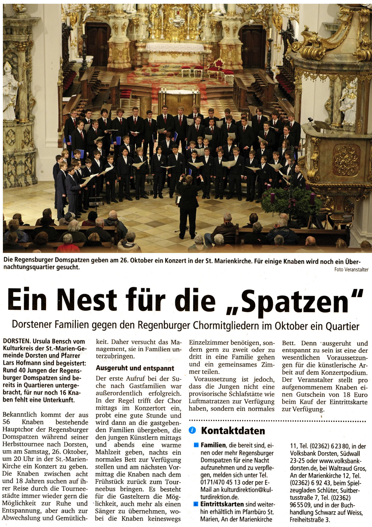 Unter diesem Titel veröffentlichte die Dorstener Zeitung einen Artikel, der die Vorfreude auf das außergewöhnliche Konzert mit den Regensburger Domspatzen am Sonntag, 26.10.2013 deutlich steigern kann …