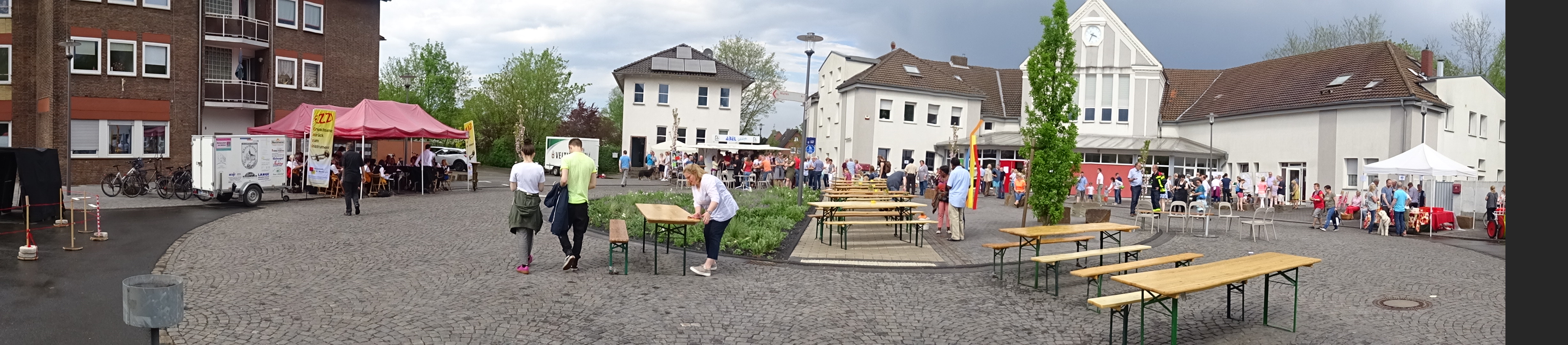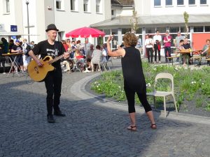 Und so wurden alle ins Boot geholt: Eltern des Marienkindergartens und mehrere Gruppen der Kirchengemeinde St. Marien sorgten für Kaffee, Kuchen, Getränke, Grillwürstchen und ein Glücksrad, die Moscheegemeinde sorgte für richtige leckere Döner-Taschen, erfrischenden Ayran und belebenden Tee, die Freie Christengemeinde organisierte Spielmobil und Bobbycar-Bahn, Zauberer, ein Café innen und eines außen, stellte ihre (Sanitär-) Räume zur Verfügung, der Löschzug Hervest I war für den ‚Fall des Falles‘ da, die allseits im Viertel bekannte Blasmusik St. Marien und die zu Schnipsen und Klatschen animierende Akustik-Cover-Band LOFX sorgten für musikalische Unterhaltung (Sorry, wenn ich eine Gruppe vergessen habe!).