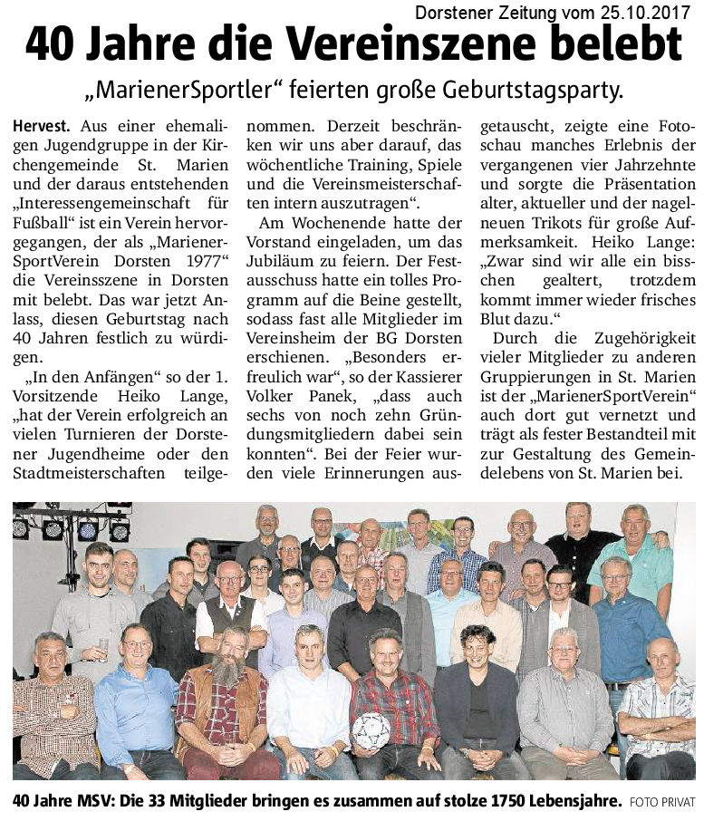 40 Jahre nun als Verein, davor schon als ökumenische Messdiener-Mannschaft: mehr zur Geschichte der Mariener hier anlässlich des Jubiläums-TippKick-Turniers