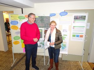Im Eingangsbereich des Pfarrheims informierte die Initiative Zukunft Marienviertel (https://zukunft.marienviertel.de) über den Stand ihrer Arbeit und warb für weitere Mitstreiter. In Sachen ‚Areal der Gerhart-Hauptmann-Schule‘ befinden sich die aktiven Marienviertler zusammen mit Stadtverwaltung und einem Städtebau-Planungsbüro in der letzten Kurve vor der Zielgeraden in Richtung Bebauungsplan.