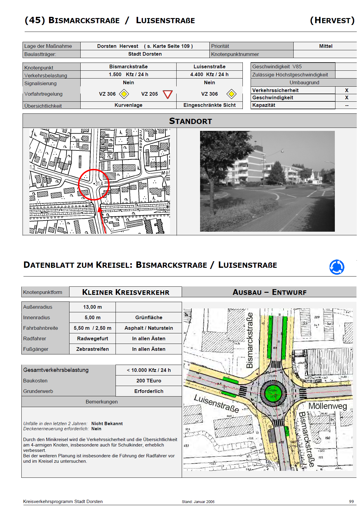 Dieser Kreisel steht zwar im -> Kreisverkehrprogramm Stadt Dorsten von 2006 unter Nr. 45 und macht auch Sinn, vor allem für die, die von der Luisenstraße kommend in den Möllenweg oder nach links abbiegen wollen; dass er aber wohl bald kommt, überrascht: Anwohner wurden schon von der Stadt angeschrieben, dass die Bushaltestelle Möllenweg etwas Richtung Westen verlegt wird.