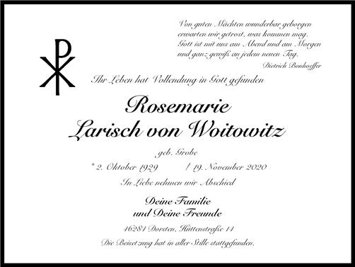 Rosemarie Larisch verstorben