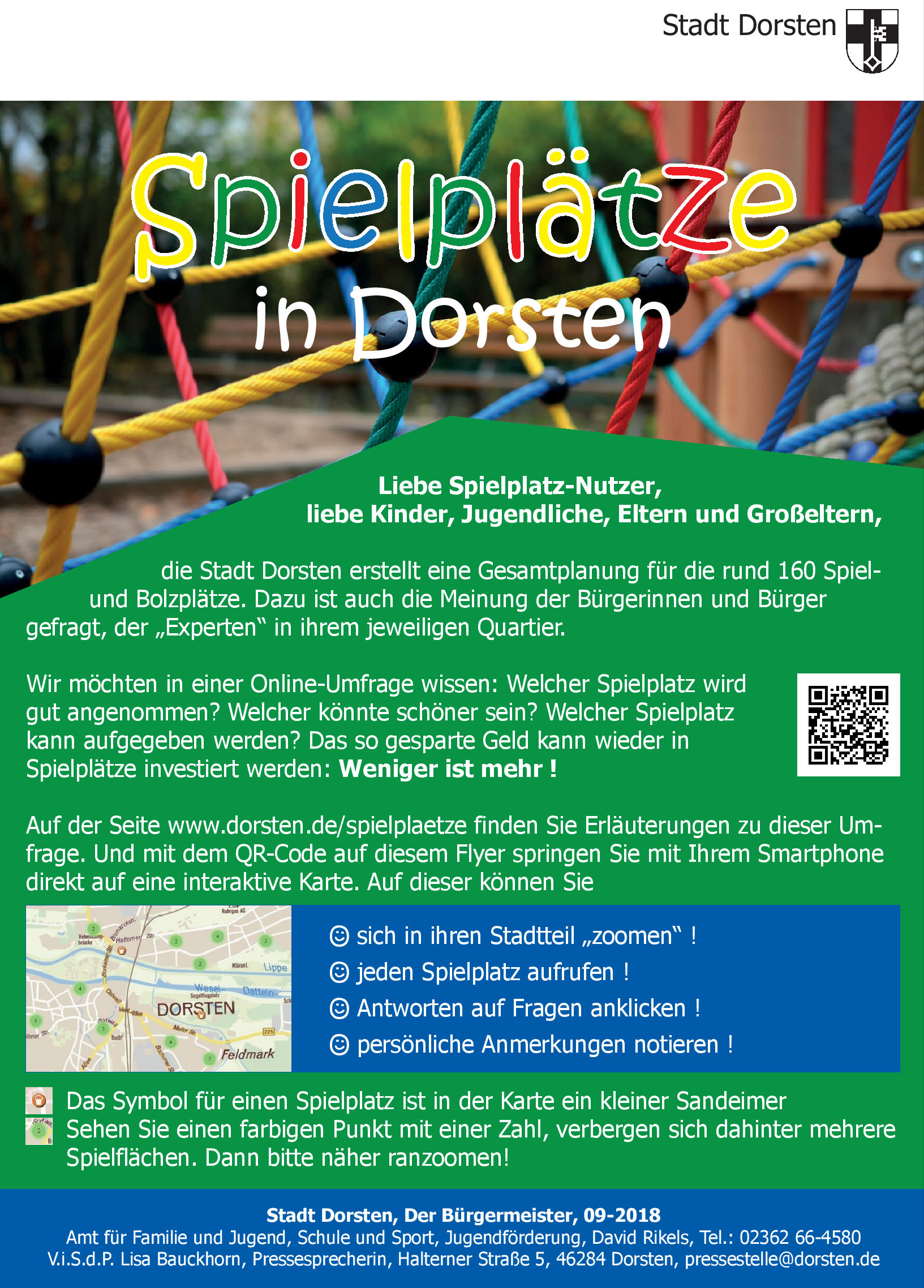 Bis zum 15. Oktober befragt die Stadt in einer Online-Umfrage die wirklichen Spielplatz-Fachleute – Kinder, Jugendliche und ihre Familien – nach ihren Erfahrungen und Wünschen: Welcher Spielplatz wird gut angenommen? Welcher könnte schöner sein? Und – ja, auch das möchte die Stadt ermitteln – welcher Spielplatz kann vielleicht aufgegeben werden?