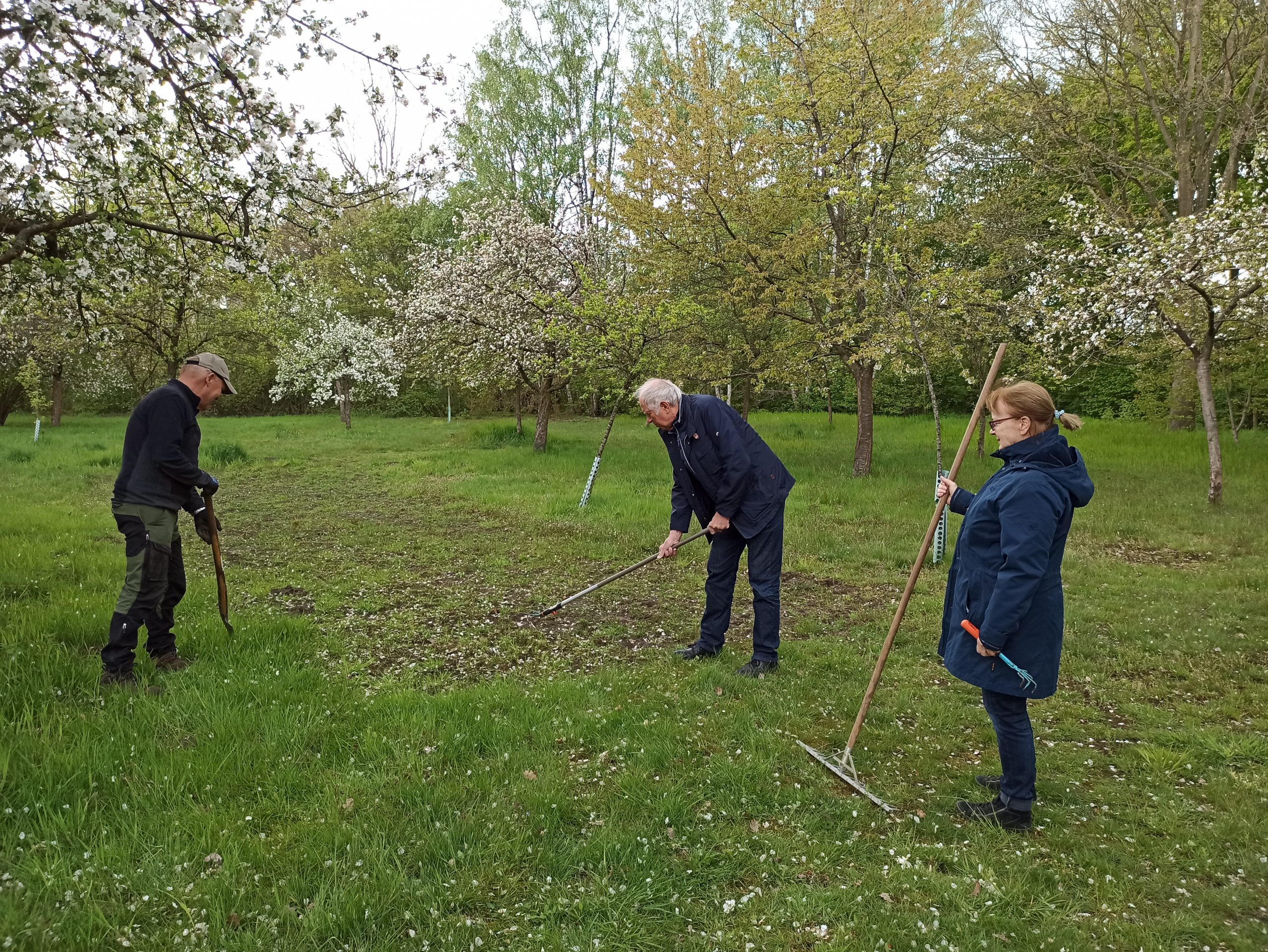 Einige Aktive der Initiative Zukunft Marienviertel trafen sich heute Nachmittag bei durchwachsenem Wetter, aber unter blühenden Apfelbäumen im Biotop, um einige Flächen dort für die Einsaat der “Vestischen Wildblumenmischung” vorzubereiten und auszusäen. Diese Mischung ist genau abgestimmt auf die Bedürfnisse heimischer Insekten. Ein Teil der im vergangenen Jahr eingebrachten Wildblumensaat geht derzeit auf, ein Teil ist aber auch der Trockenheit und hungrigen Mäusen und Vögeln zum Opfer gefallen. Hoffen wir, dass unsere Insekten in diesem Jahr und den folgenden einen reich gedeckten Tisch finden! Ein langer Atem ist aber vonnöten, denn die Wiese braucht ein paar Jahre, bis sie sich wie gewünscht entwickelt und stabilisiert hat.