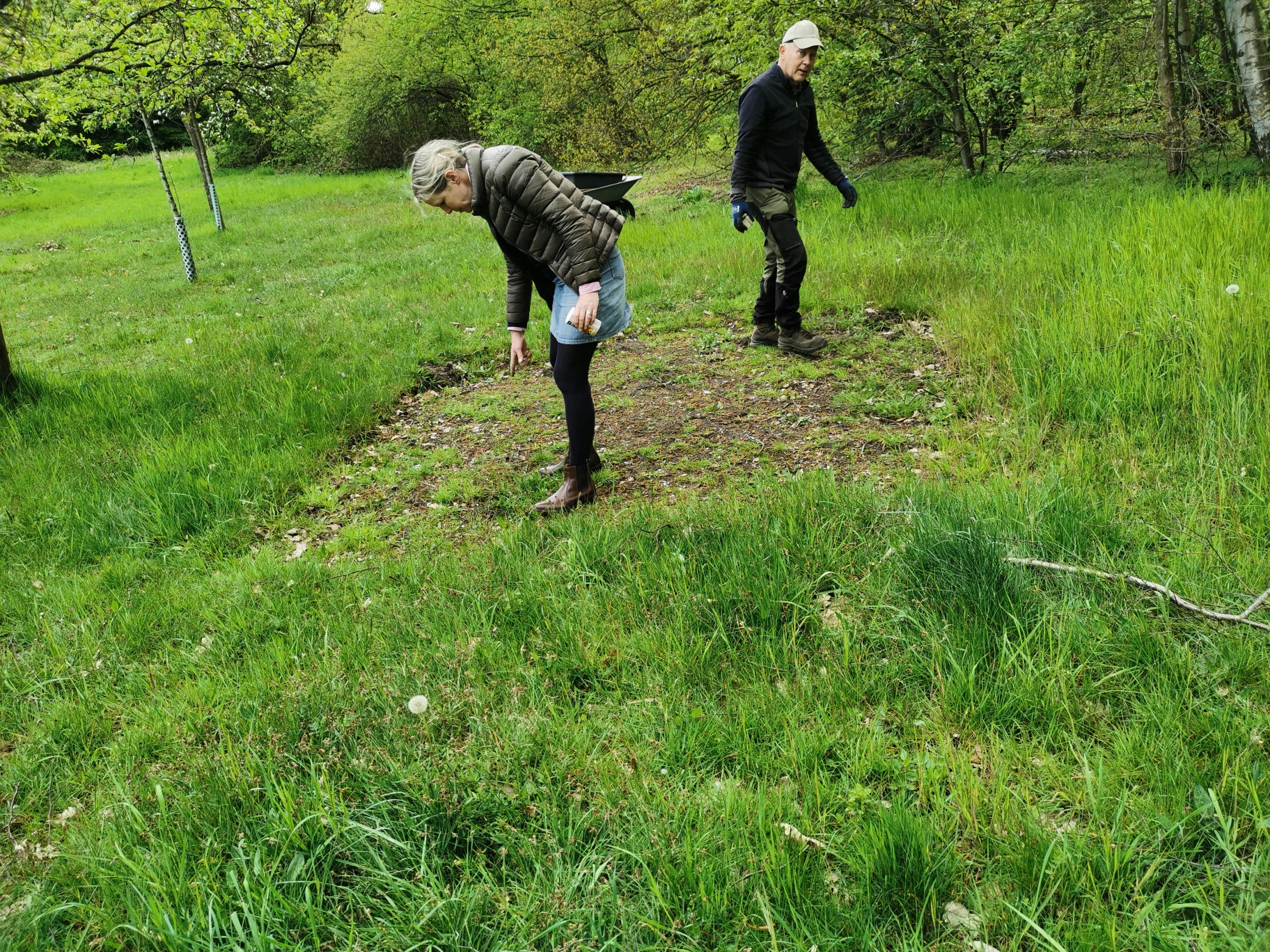 Einige Aktive der Initiative Zukunft Marienviertel trafen sich heute Nachmittag bei durchwachsenem Wetter, aber unter blühenden Apfelbäumen im Biotop, um einige Flächen dort für die Einsaat der „Vestischen Wildblumenmischung“ vorzubereiten und auszusäen. Diese Mischung ist genau abgestimmt auf die Bedürfnisse heimischer Insekten. Ein Teil der im vergangenen Jahr eingebrachten Wildblumensaat geht derzeit auf, ein Teil ist aber auch der Trockenheit und hungrigen Mäusen und Vögeln zum Opfer gefallen. Hoffen wir, dass unsere Insekten in diesem Jahr und den folgenden einen reich gedeckten Tisch finden! Ein langer Atem ist aber vonnöten, denn die Wiese braucht ein paar Jahre, bis sie sich wie gewünscht entwickelt und stabilisiert hat.