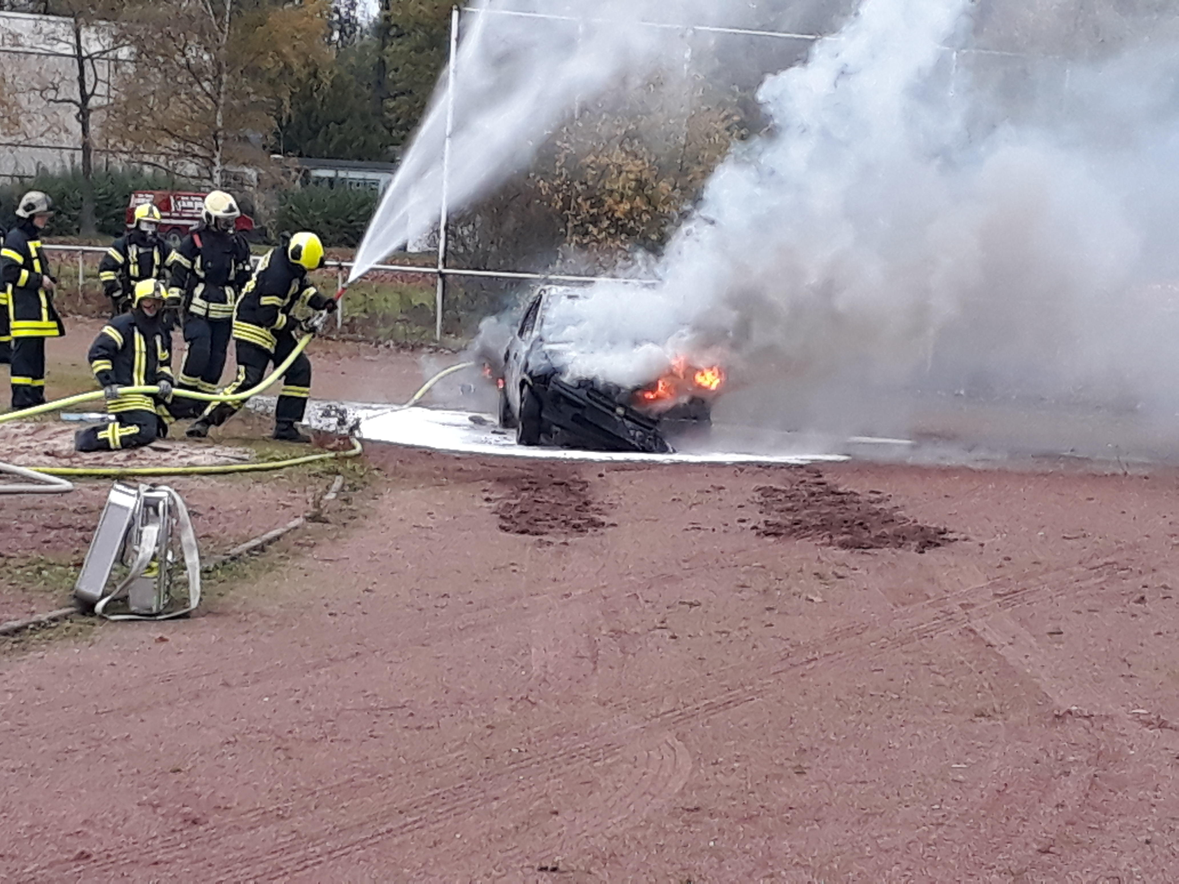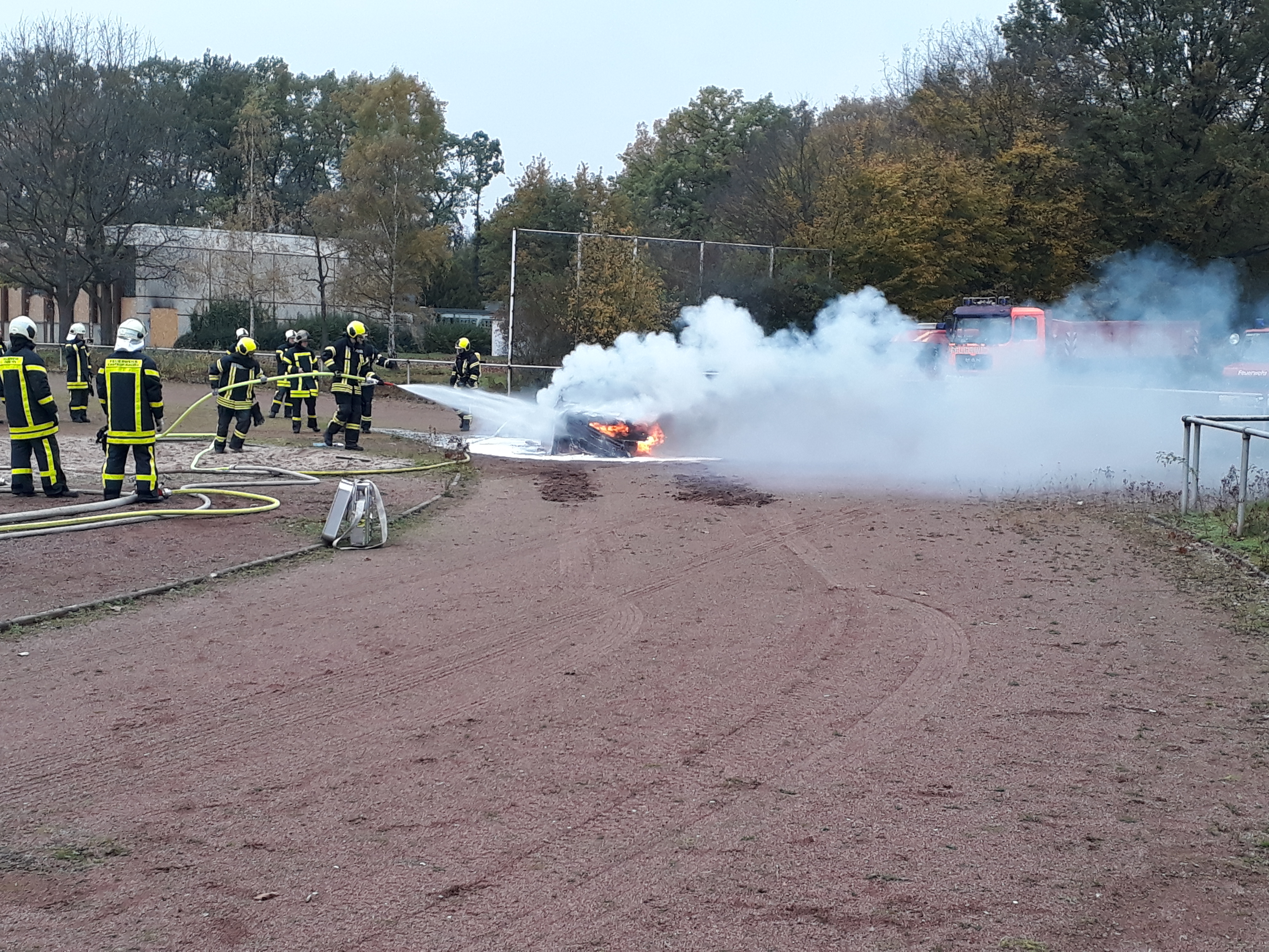 Gut, dass es ’nur‘ eine Übung war, gut, dass niemand zu Schaden gekommen ist, gut, dass die Feuerwehrleute einen Platz auf dem Sportplatz gewählt haben, von dem aus die Anwohner kaum durch den Geruch belästigt wurden, wichtig, dass die Brandbekämpfung geübt wird!