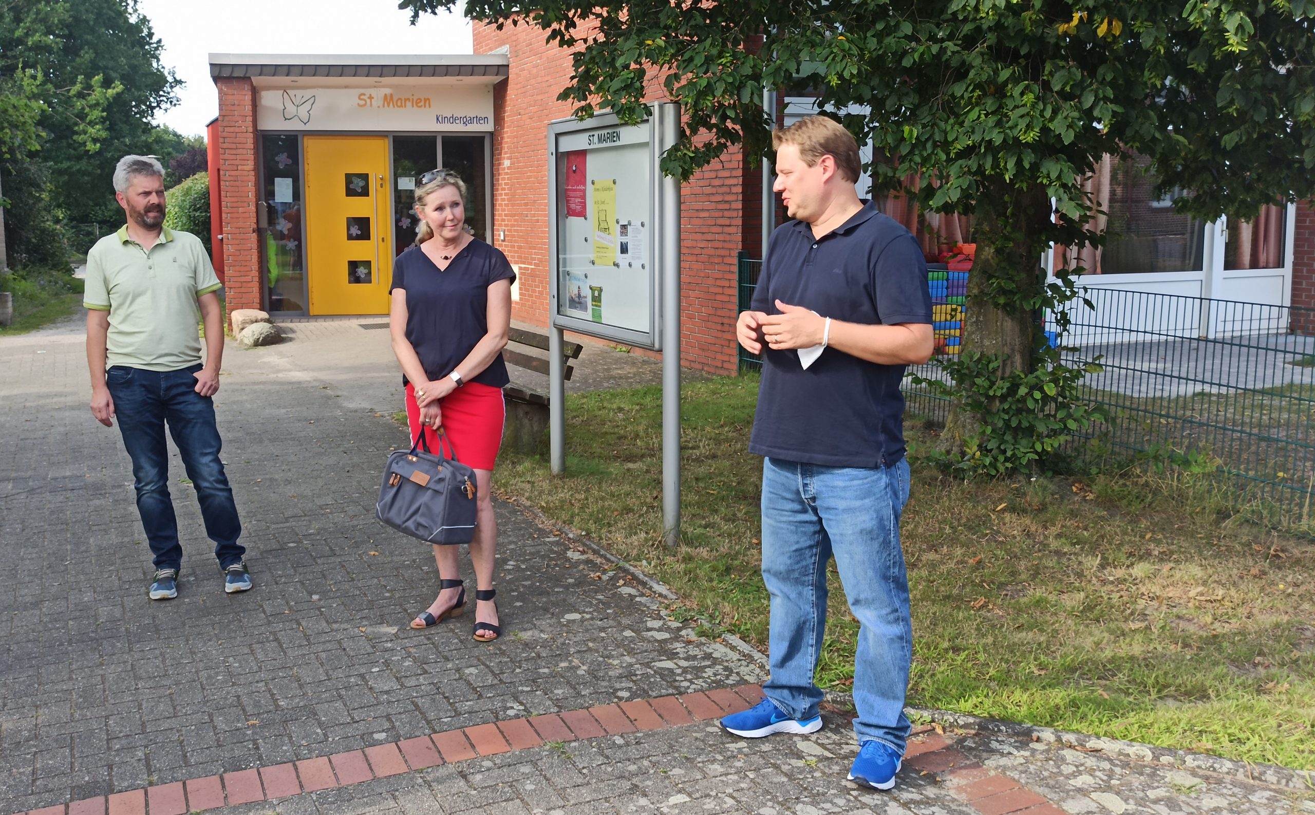 Eigentlich wollte Sven Volmering, CDU-Bundestagskandidat für den Wahlkreis 125 und damit auch für das Marienviertel, am Samstag Gast bei der Eröffnung von Offenem Bücherschrank und Sitzgruppe sein. Eingeladen hatte ihn Stadtrat Franz-Josef Gövert, zum einen CDU-Vertreter des Marienviertels im Rat, zum andern Aktiver in der Initiative Zukunft Marienviertel. Terminschwierigkeiten führten Volmering schon heute in unser Quartier, wo er gemeinsam mit Vertretern des Hervester CDU-Ortsverbandes und Aktiven der Initiative Zukunft sich interessiert zeigte an Projekten und Problemen im Viertel. Sicher, es ist Wahlkampf, aber es macht den Vater zweier kleiner Mädchen durchaus betroffen, wenn er erfährt, dass zwar möglichst junge Familien den Altersschnitt im Viertel senken sollen, es aber keine gut erreichbare Grundschule gibt.
