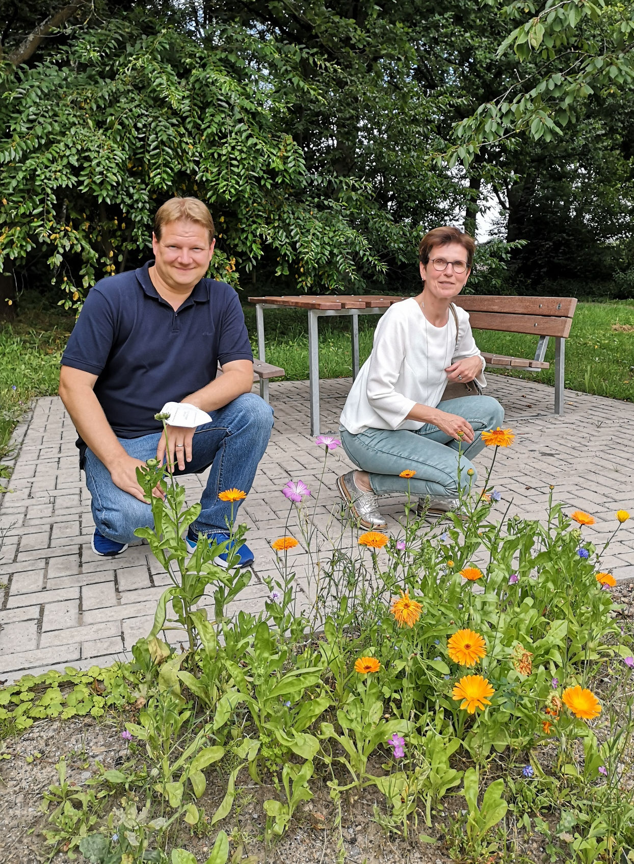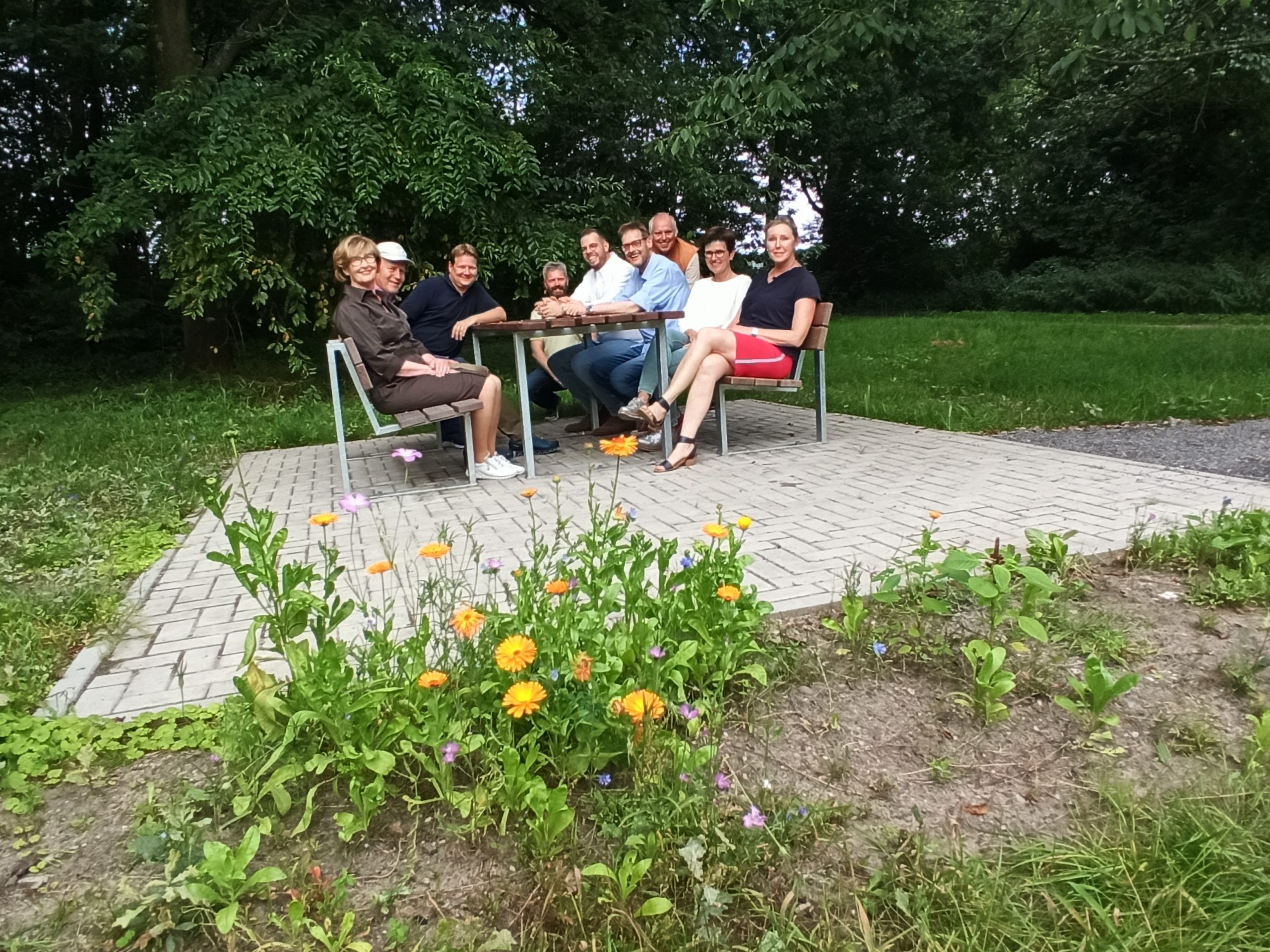 Weiter ging´s ins Biotop zur ebenfalls neuen Sitzgruppe, wo Volmering auch als Vater zweier junger Kinder die Bedeutung einer nachhaltigen und ökologisch klugen Entwicklung heute für die nachfolgenden Generationen unterstrich.