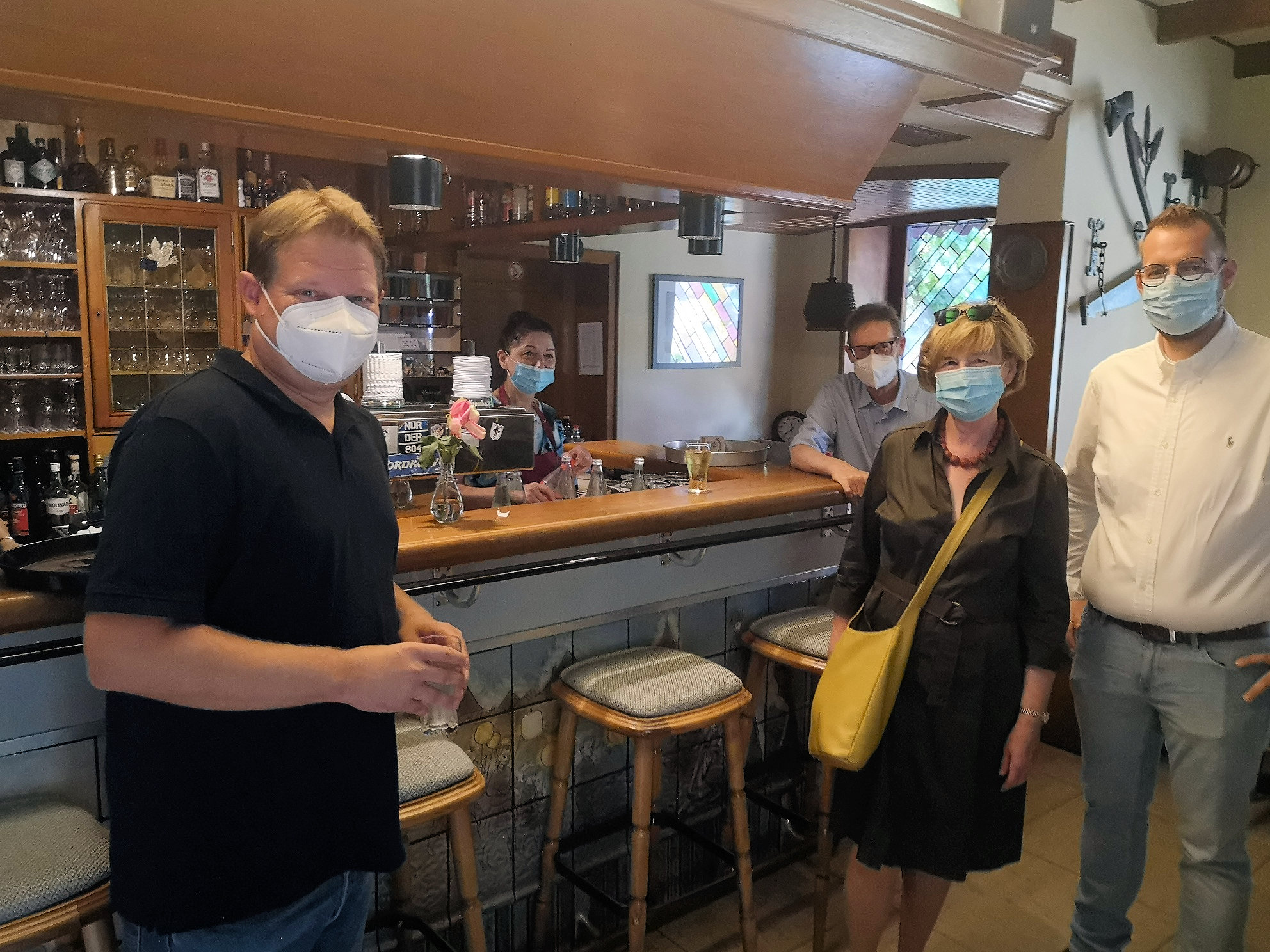 Nicht nur zur Erfrischung, sondern vor allem, um das „Wohnzimmer“ des Viertels zu präsentieren, kehrte die Gruppe kurz in Lunemann´s Wirtshaus ein (wo sich Lena Steuter wie gewohnt von ihrer besten Seite zeigte), um anschließend den noch brach liegenden Spielplatz schräg gegenüber in den Blick zu nehmen. Nicht nur hier, angesichts der Elterninitiative zum Wiederaufbau, war Volmering vom Engagement der Marienviertler sichtlich beeindruckt.