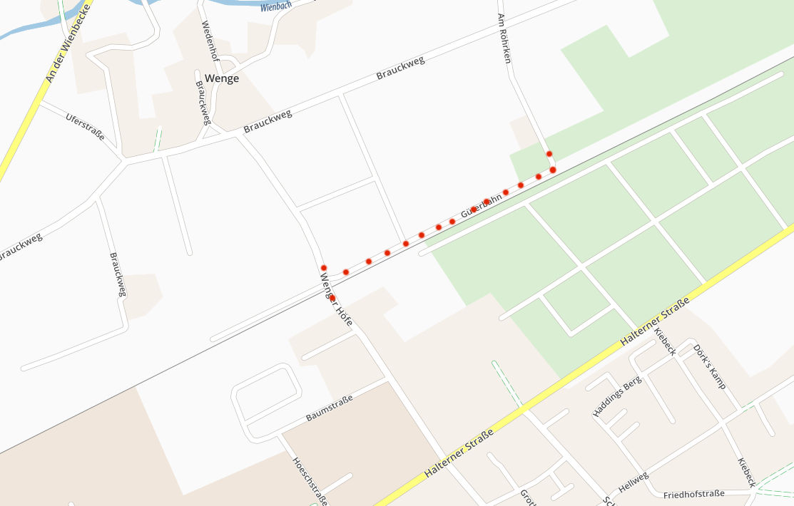 Wegen des Baus der Gasleitung sind die Straßen Wenger Höfe und Am Röhrken am Montag und Dienstag (27. und 28.7.2020) im Bereich der Gleise voll gesperrt.