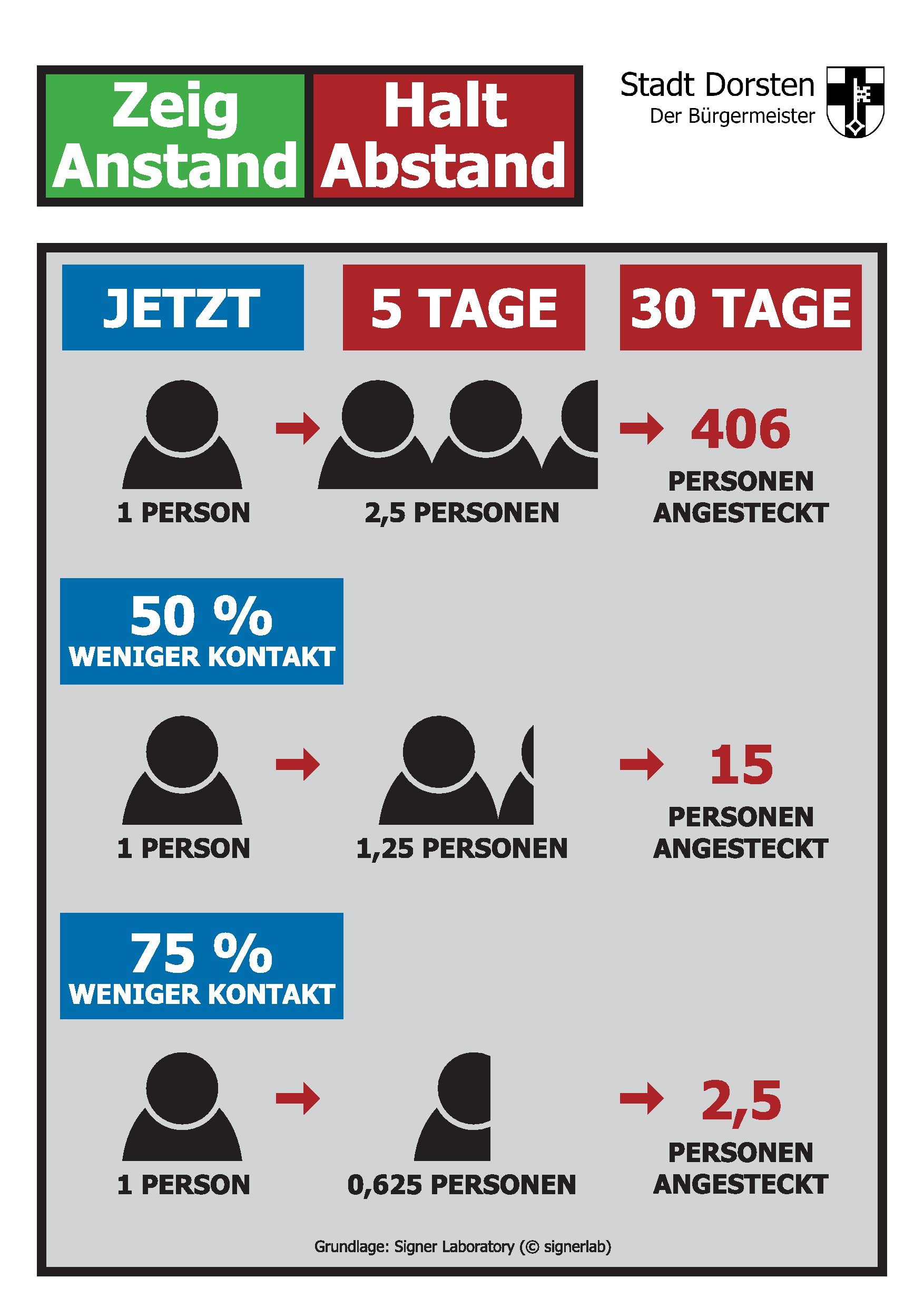 Die Stadt Dorsten hat darum das Banner „Zeig Anstand! – Halt Abstand!“ entwickelt, das auf www.dorsten.de von allen heruntergeladen werden kann, die es verwenden möchten.